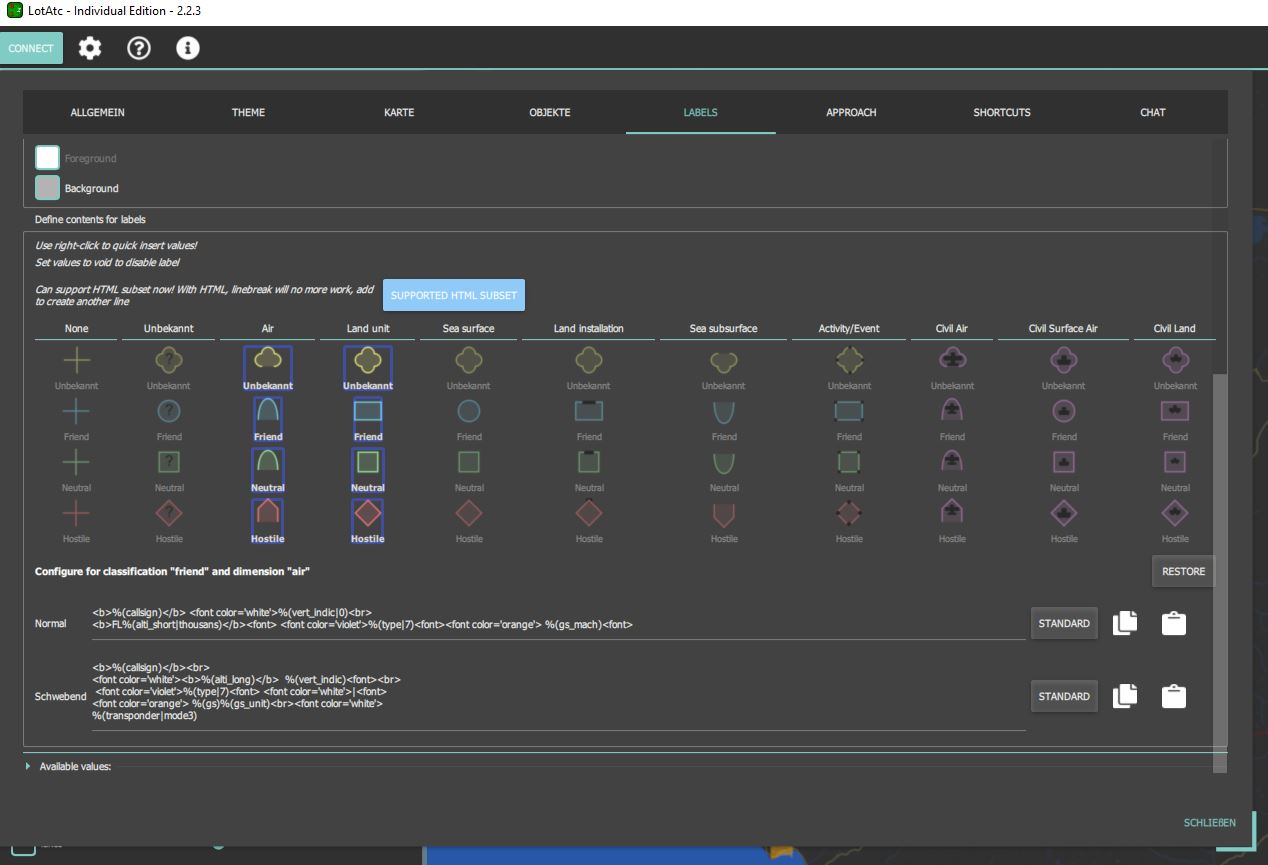 In LotAtc muss man in denn Einstellungen (Zahnrad) zu den Labels wechseln und das Label für Air → Friend anpassen. Dort muss man sich statt name nun callsign eingeben und nun wird einem auch das entsprechende Callsign angezeigt.